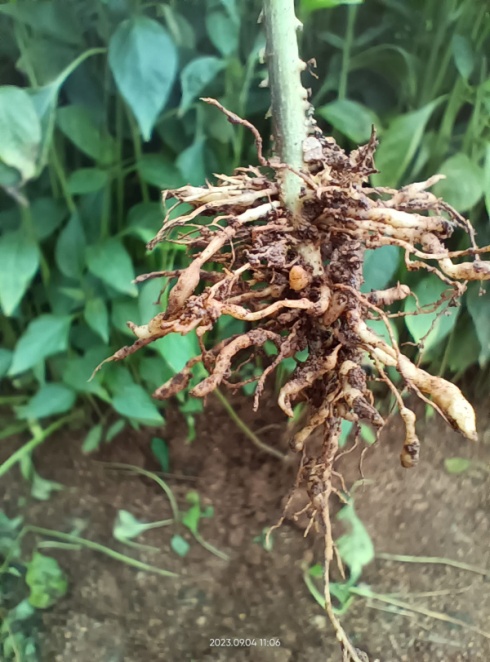 KVK, Palem organized a Training programme on Integrated Crop Management in chilli & Diagnostic field visit at Guntakoduru(V), Tadoor(M), Nagar kurnool dist on 04.09.2023. Dr. Adhi Shankar, SMS (Horticulture), KVK, Palem given Training on Nursery management, seedling dip method, Integrated Nutrient Management, and integrated pest and disease management. Explained special operations like drip and mulching systems, biofertilizer application, and fertigation techniques to reduce the cost of cultivation. Farmer-Scientist interaction held at the end of the session and given solutions to farmers' queries about chilli crop. Diagnostic field visited to the chilli farmers of the village. suggested drenching of COC@ 3g/L to avoid collar rot and wilt complex and avoid excess moisture conditions in the fields. Visited to Md. Sulthan chilli field and found Root-knot nematode infestation in the nursery and main field. Suggested drenching of Fluopyram 400SC (34.48%w/w) @ 0.625ml/L twice or Fluensulfone 2% Gr@ 1.5g/ plant application. Aslo observed collar rot in Chiili and suggested drenching of Ridomil Mz@ 2.5g/ L. In this programme Dr. Adhi Shankar, SMS (Horticulture), KVK, Palem, Ramesh, Agri. officer, Tadoor, AEO of Guntakoduru, Sri. Venkatayya, Sarpanch, Sri. Chandraiah, Dy. Sarpach, Ramesh, Srisailam, Ganesh- Input dealers and 36 farmers were participated.