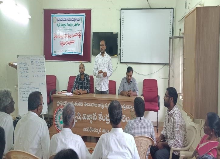 KVK, Palem has organized training programme on functional and management aspects of Farmer Producer Organization (FPOs) for Directors & Farmers at KVK, Palem on 26.10.2024. In this programme Dr. T. Prabhakar Reddy, Programme Coordinator, KVK, Palem addressed on overview of FPOs in India, functional and management aspects of FPOs/FPCs or Farmers clubs from top level to lower level for effective implementation of activities and also briefed about export-import policies for FPOs/FPCs products. Dr. B. Rajashekar, SMS (Agril. Extension) briefed about entrepreneurial opportunities in agriculture and allied sectors for FPOs and its importance in timely execution of activities and stressed different income generation activities like vermicomposting, nursery management, seed processing, protected cultivation and value addition in millets etc. In this programme all the scientific staff of KVK, Palem, a total of 56 FPOs board of directors and farmers were participated.