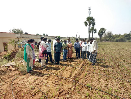 World Pulses day is celebrated annually on 10th February every year and the theme for 2021 is “Nutritious seeds for sustainable future”. Pulses were part of human and animal food for times immemorial but indices like malnutrition, hunger, poverty and shortage of foods have increased world’s concern to meet the new targets of feeding the burgeoning population through a healthy, hygienic and sufficient diet. In this context, pulses are both economical and as nutritional. These pulses provide protein, dietary fibre as well as a significant amount of iron, zinc, folate and magnesium there by enhancing quality of diet. In addition, the phytochemicals like saponins and tannins in pulses possess antioxidant and anti-carcinogenic effects. Pulses are legumes or small plants with edible seeds. The term “pulses” differentiates from “crops” because pulses are harvested when the seeds become dry whereas crops are harvested with their plants are still green. Pulses include beans, dry peas and lentils whereas dals used in the Indian subcontinent are dried, split pulses requiring no pre-soaking. India is the largest producer of pulses in the world. These dals are the most common and versatile food that one can find in an Indian kitchen. They are used on a regular basis to make curry in Indian staple diet and form the main ingredient in several authentic recipes. These dals are flavourful, nutritious and super healthy. KVK, Wyra celebrated World Pulses Day at Basavapuram village, Chintakani Mandal, Khamam with 57 farmers, farm women plus 20 local representatives, DOA officials and KVK scientists. Mrs. M. Vijayanirmala, DAO, Khammam, Mr. K. Venkateswara Rao, ADA, Chintakani mandal, Dr. J. Hemantha Kumar, Programme Coordinator, scientists Mrs. P. S. M. Phanisri, Dr. Jessie Suneetha W, Dr. K. Ravi Kumar and Dr. V. Chaitanya attended the meeting. The common problems in varieties available for cultivation of pulses, pests and disease management, nutritional importance and preparation of pulse-based recipes were discussed at length by Programme Coordinator and scientists of KVK, Wyra. The commonly used pulses were displayed for creating awareness on low-cost pulses available for the benefit of farm women as most of them know about like red gram dal, moong dal, Bengal gram dal and urad dal. As part of the program, the scientists and agriculture department officials of Khammam visited local fields where innovative farmers are growing black gram using drip with technical inputs from KVK scientists.