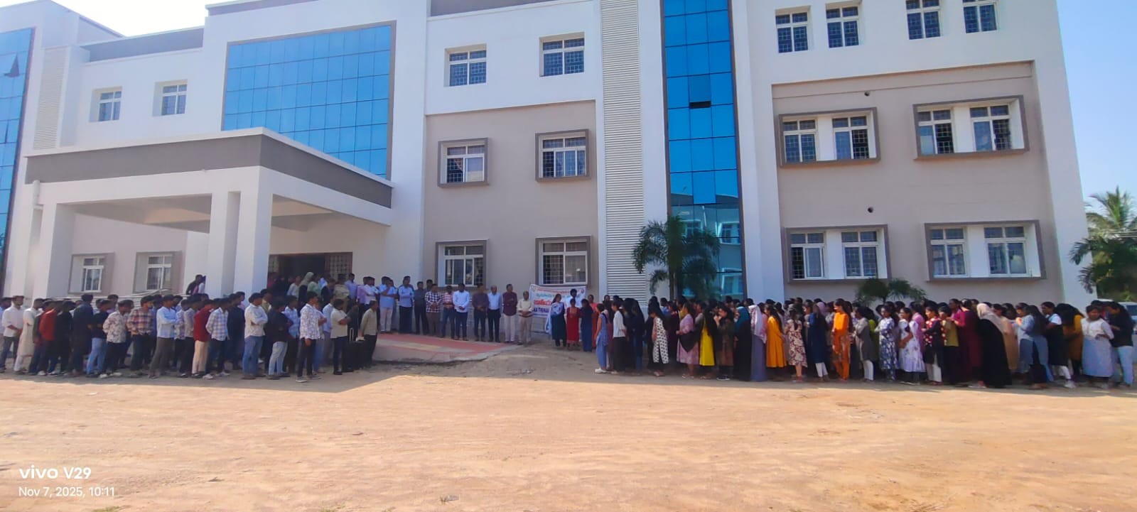 In commemoration of the 150th Anniversary of the Vande Mataram song, the NSS Unit of Agricultural College, Warangal, under the coordination of NSS Programme Officers Dr. B. Raju, Assistant Professor (SSAC) & Smt. K. Gopika, Assistant Professor (Plant Pathology), organized a mass singing of Vande Mataram in its full version on 07.11.2025 at 10:00 AM in the college premises. The programme was held in the presence of Dr. V. Ravinder Naik, Associate Dean, Agricultural College, Warangal, with the active participation of all teaching, non-teaching staff, and students to mark this patriotic occasion. Dr. V. Ravinder Naik addressed the gathering and delivered inspiring words to the students, emphasizing the spirit of unity, integrity, and national pride. All the Students, Teaching & Non-Teaching staff participated with great enthusiasm, making the event a grand success.