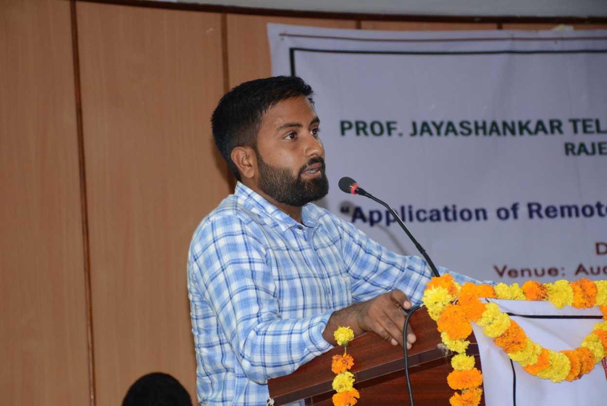 A one-day Seminar on “Application of Remote Sensing and GIS in Water Management” was conducted on 26-11-2019,at WTC Auditorium, Water Technology Centre, PJTSAU, Rajendranagar as a part of first anniversary celebrations of establishment of Remote Sensing and GIS laboratory. About 103 members from different research stations and colleges of PJTSAU across the Telangana state (67 Teaching Staff + 36 students) who have successfully completed the on line interactive mode, IIRS outreach programme which was co-ordinated by WTC, Hyderabad on ‘Basics of Remote Sensing, GIS and GNSS’ from 19th August to 22nd Nov, 2019 have attended this one day seminar. Invited dignitaries for the programme were Dr. R. Jagdeeshwar, Director of Research; Dr. K. Meena Kumari, Dean of PG Studies; Dr. D.Vishnuvardhan Reddy, Director of Extension; Dr. K. Sadashiva Rao, Dean of Agriculture Engineering, PJTSAU and Dr. A. Padmaraju, Ex Vice Chancellor, ANGRAU. In this programme Dr. M. Uma Devi, Director, WTC, Dr. T.L. Neelima, Scientist (Agronomy) and Dr. Md. Lateef Pasha, Senior Scientist (Agronomy) and other technical staff and non teaching staff of WTC have participated. The programme was started with inauguration session and Dr. M. Uma Devi has presented the key note address of the brief works carried out in the Remote Sensing and GIS lab past one year. Participants of IIRS out reaching programme have given their feedback and expressed their happiness in undergoing the training programme for 84 days. The Director of Research in his speech mentioned that the RS and GIS lab was established with investment of about one Crore. As the Telangana Govt. is providing irrigation facility to the farming community by investing in lift irrigation projects and rejuvenation of small and marginal water tanks etc, identification of suitable crops/cropping patterns, generation of soil fertility maps etc. using the latest tools like RS and GIS is the need of the hour. He also suggested the staff members to come up with suitable project proposals using RS and GIS tools to meet the needs of the state for natural resources management. He expected the laboratory to build up the capacity of staff and students in this line.