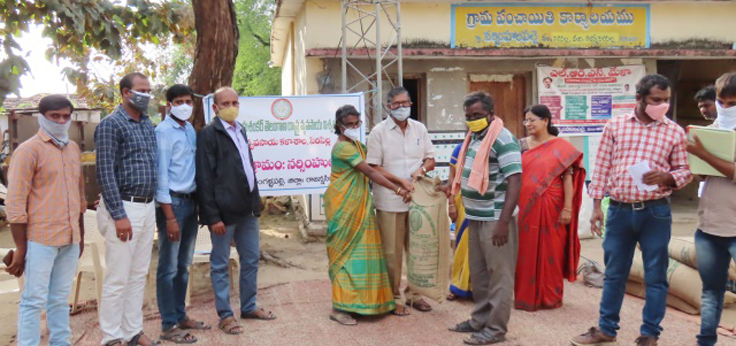 The core team of faculty of Agricultural College, Sircilla, visited adopted village (Narasimhulapalle) on 12-11-2020 for distribution of seed of paddy (JGL-24423) and Hedge Lucerne (HL-1), demo on planting of APBN-1 slips and raising of marigold nursery in protrays. In this programme the faculty including committee members of the village adoption programme, the farmers of the village and Sarpanch were participated. At the outset, Dr. K. Rajesh, Assistant Professor (Crop Phy.) and Co-ordinator, Village Adoption Programme addressed the gathering and explained about the importance of fodder crops and urged the farmers to take up cultivation of fodder crops on a large scale. Dr. K. Kanaka Durga, Associate Dean, enlightened farmers on improved rice varieties of PJTSAU and emphasized the need for promotion of fodder crops. As part of popularization of PJTSAU varieties, seed of rice variety JGL-24423 (Jagtial Rice-1) was distributed to selected farmers of the village. Dr. CH. Ramesh, Assistant Professor (Agro.) explained about the characters of the variety and the package to be adopted during ensuing rabi season. Dr. M. Shanti, Professor (SSAC) highlighted the importance of the fodder crops, method of planting, package of practices to be followed during crop period and demonstrated planting of APBN-1 slips in the farmer’s field. Dr. R. Sathish, Assistant Professor (Ento.) demonstrated the method of raising of nursery in protrays and explained in brief it’s advantages over the traditional methods of planting. He also pinpointed the precautions to be taken during raising of nursery. The programme ended by Sarpanch’s speech on the importance of the programme and instructed the farmers to follow timely advice as suggested by the committee members. On this occasion, Mr. T. Arunbabu, Assistant Professor (Agro.) proposed vote of thanks to the farmers and faculty.