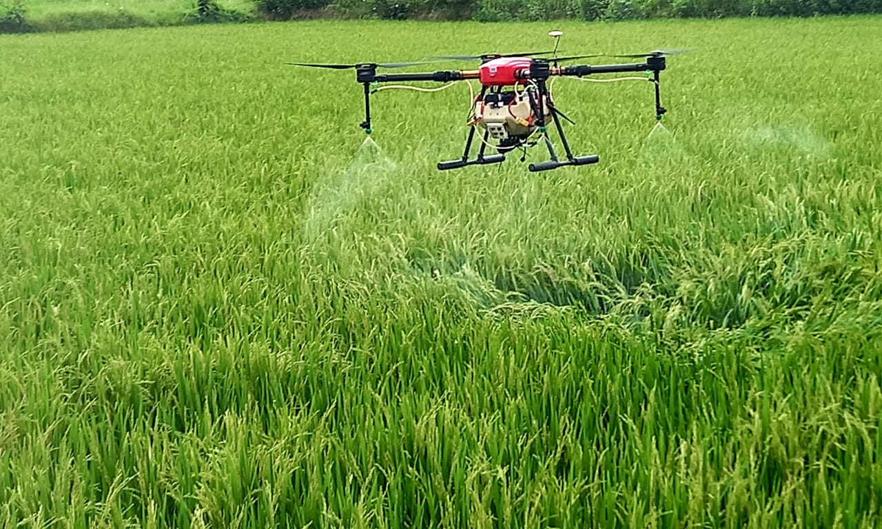 A demonstration cum farmers awareness programme on “Pesticide spraying with Drone” was organized by Dr. A.V. Ramanjaneyulu, Sr. Scientist (Agro.) & Head, Dr. N. Sainath, Scientist (SSAC) and Smt. D. Swetha, Scientist (Agro.) from ARS, Tornala on 08-10-2021, at Ibrahimpur, Narayanraopet mandal, Siddipet district. Mr. J. Vijay, Coordinator, DAATTC, Tornala, Mr. M. Nagarjuna, AEO, Ibrahimpur village, Mr. Devaiah, Sarpanch, Ibrahimpur village, Mr. K. Nagesh Reddy, President of Rythu Samanvaya Samithi (RSS), Mr. P. Sravan Kumar, Operations Lead, MARUT drones and team and 27 farmers from the village have participated in the programme. In this programme, a drone from ‘Marut drones’ tech pvt. Ltd., Hyderabad was employed to demonstrate spraying of pesticide (Propiconazole 200 ml/acre in 24 acres and Tricyclazole @ 120 grams/acre in 6 acres) in an area of 30 acres of paddy including ARS, Tornala monitored seed production plots. The varieties covered were JGL-24423, Telangana sona, IR-64 and KNM-118. The drone with Teejet-11002 model nozzle and 1.8 lit/minute discharge was operated at a speed of 2.7 m/second, manually. It took 20 minutes to spray in one acre paddy area and incurred a cost of Rs. 500/acre against 3-4 hours time at a cost of Rs. 800-1000/acre with conventional sprayers, excluding chemical cost. Further, it was observed that drift problem was minimum vis-à-vis conventional method. This way farmers could be shown that spraying with drone is advantageous in terms of saving labour, time and cost. Furthermore, it helps the farmers to escape from natural calamities by completing the spraying timely besides improving labour efficiency. The inaccessible and remote cropped areas and tall grown crops can also be reached with this method which can’t be done manually. In this programme, a drone from ‘Marut drones’ tech pvt. Ltd., Hyderabad was employed to demonstrate spraying of pesticide (Propiconazole 200 ml/acre in 24 acres and Tricyclazole @ 120 grams/acre in 6 acres) in an area of 30 acres of paddy including ARS, Tornala monitored seed production plots. The varieties covered were JGL-24423, Telangana sona, IR-64 and KNM-118. The drone with Teejet-11002 model nozzle and 1.8 lit/minute discharge was operated at a speed of 2.7 m/second, manually. It took 20 minutes to spray in one acre paddy area and incurred a cost of Rs. 500/acre against 3-4 hours time at a cost of Rs. 800-1000/acre with conventional sprayers, excluding chemical cost. Further, it was observed that drift problem was minimum vis-à-vis conventional method. This way farmers could be shown that spraying with drone is advantageous in terms of saving labour, time and cost. Furthermore, it helps the farmers to escape from natural calamities by completing the spraying timely besides improving labour efficiency. The inaccessible and remote cropped areas and tall grown crops can also be reached with this method which can’t be done manually.