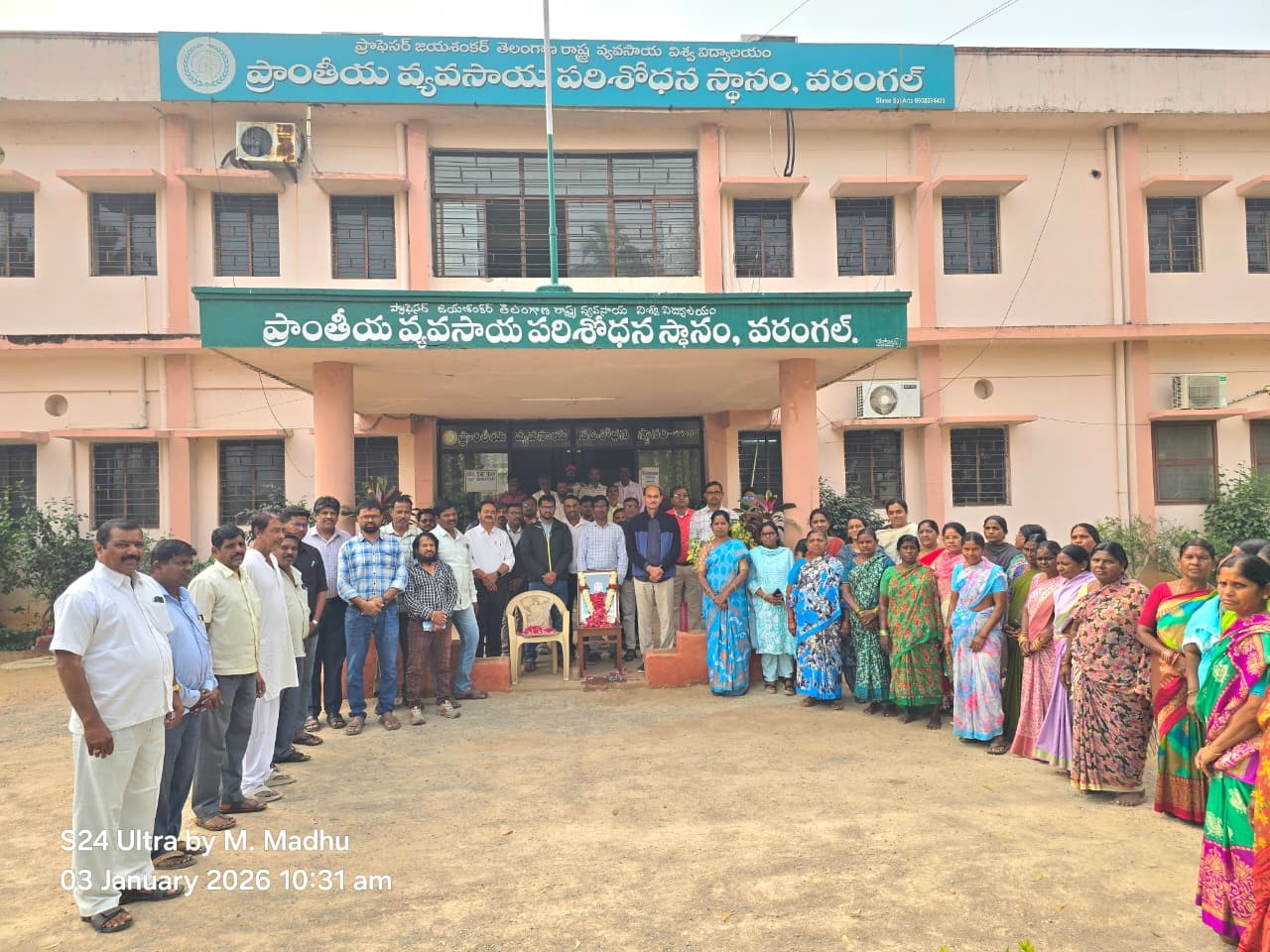 Respected ADR, RARS, Warangal, along with all the staff members of RARS, Warangal, paid floral tributes to Smt. Savitribai Phule on the occasion of her birth anniversary at the ADR Office, RARS, Warangal.