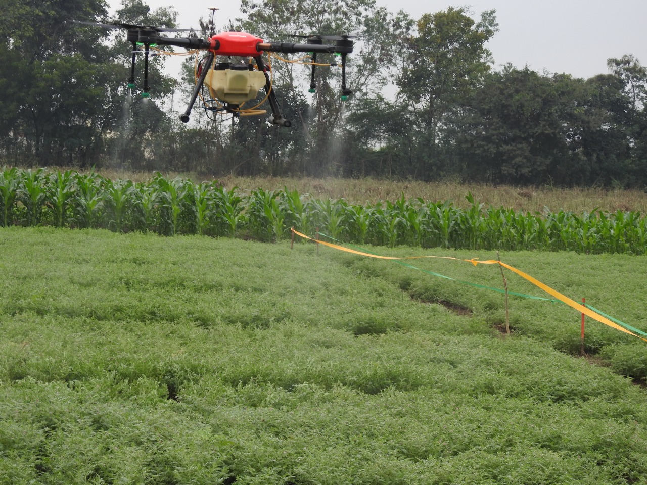 Precision Agriculture using Drones for pesticide application regulatory studies at ARS, Adilabad premises on 11-01-2022