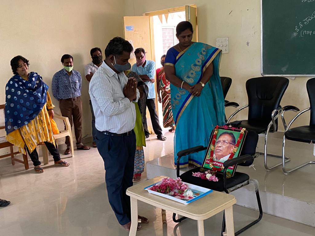 Professor Kothapalli Jayashankar Jayanthi was celebrated at Agricultural Polytechnic and Agricultural Research Station, Kampasagar on 06.08.2020. Dr.I.Swarnalatha Devi, Principal, APT, Kampasagar, Dr. Ch. Damodar Raju, Principal Scientist & Head, ARS, Kampasagar, Dr. K. Sumalini, Senior Scientist (Pl.br.), Dr. G. Shiva Prasad, Scientist (Pl. Br.), Mrs. V. Sri Ramya, Assistant Professor (SSAC), Mr. V. Narsing Rao, Superintendent, Mr. M. Parushuramulu, Senior Assistant, Mrs. D.Varalakshmi, Senior Assistant and contract labour have participated in the Programme. The programme was started by offering floral tributes to Prof. Jayashankar. Dr. I. Swarnalatha Devi said that Prof Jayashankar has extended services as ideologue to Telangana movement as well as fought for separate Telangana state since 1952 until his last breath. After that Dr. Ch. Damodar Raju told the formation of Telangana State was his life goal and Professor Jayashankar made relentless efforts on Telangana state formation.