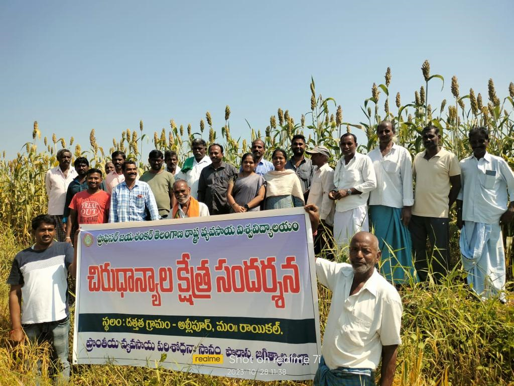 - >Regional Agricultural Research Station, Polasa, Jagtial organized field day in millet crops at adopted village Allipoor (V), Raikal (M), Jagtial (D) on 28.10.23.
