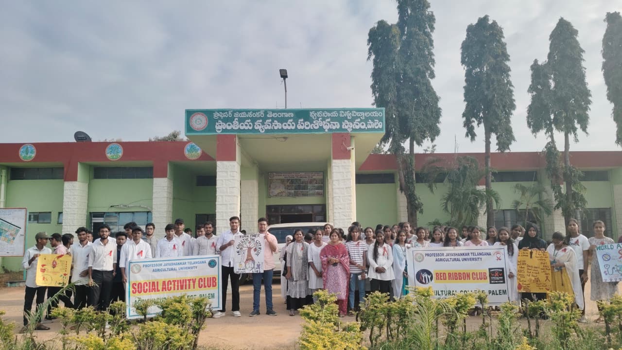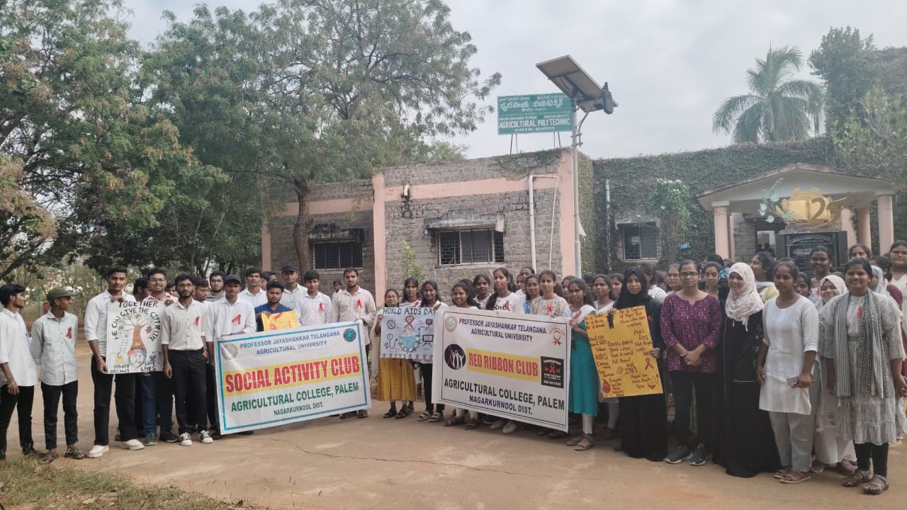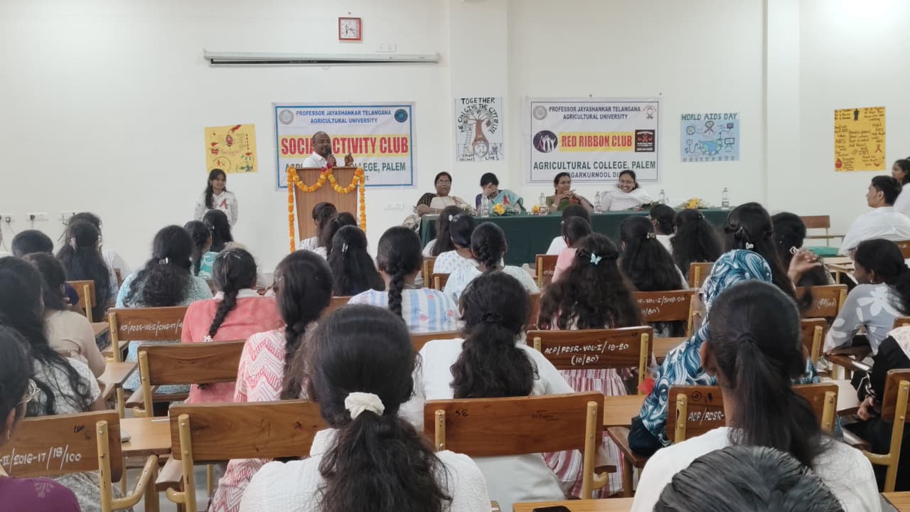 The Red Ribbon and Social Activities Club of Agricultural College, Palem, has organized an extensive AIDS Awareness Programme on 1st December 2025, in observance of World AIDS Day. The initiative reflected the institution’s commitment to promote student health, social responsibility, and community awareness. The programme was held in the college premises with enthusiastic participation from students, faculty, and invited medical professionals. The programme was honoured by the presence of two distinguished guest speakers: