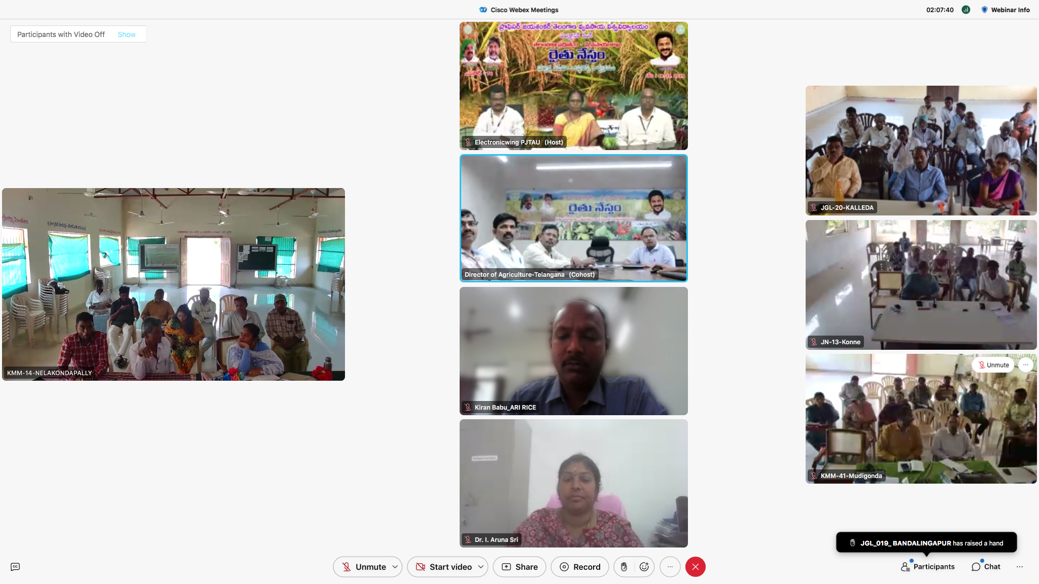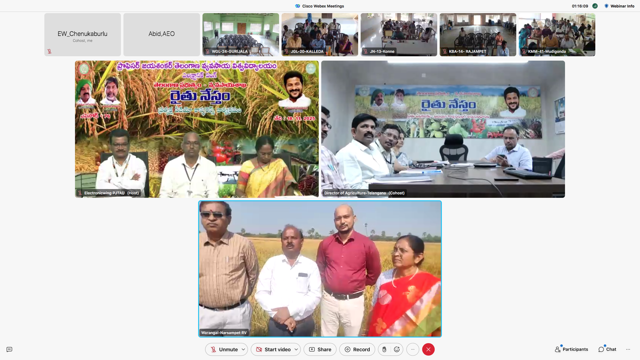 Rythu Nestham Live video conferencing of 76th episode was conducted from Electronic Wing Studio at ARI, Rajendranagar on 18-11-2025 from 10 AM to 11-40 AM The programme started with live interactions of farmers from Gujirala (V), Narsampet, Warangal who shared about their success in cultivation of direct seeded rice in 300 acres, which proved to be cost effective method. Dr. A.V.Ramanjunellu Principal Scientist (Agronomy) & Head AICRP on Agro Forestry gave various options for ensuing rabi in rice fallows under zero Tillage condition. Later Dr.V.Anitha Kumari, Principla Scientist & Head, spoke on effective plant protection in Chilly crop. The meeting ended with interaction session of farmers with Dr. T. Kiran Babu (Pl. Pathology) and Dr. Aruna Sree Scientist ( Ento), Rice Institute, R’nagar. The programme was presided by Dr. M.Sreenivas Coordinator, Electronic wing, Officials from Department of Agriculture, Directorate of Agriculture and officials of line departments and about 35,000 farmers from 1578 Rythu Vedikas participated in the programme across the state.
