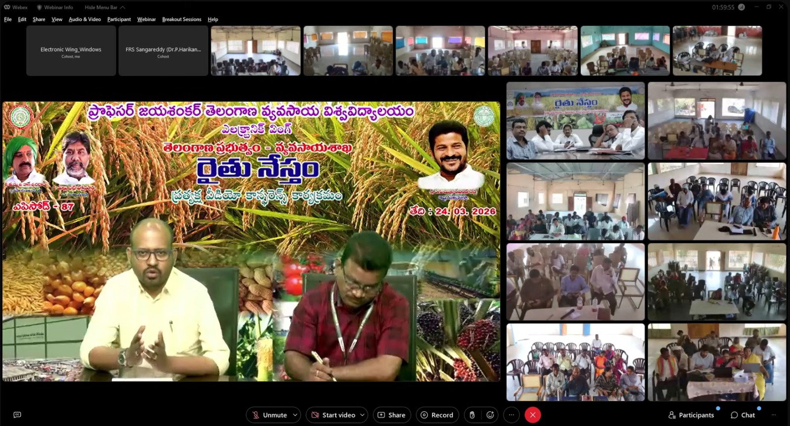The programme began with the sharing of experiences by progressive farmer Smt. E. Vani, who spoke about her success in sericulture as a profitable enterprise. This was followed by technical sessions from Dr. P. Harikanth, Scientist (Horticulture), and Dr. K. Maounika, Scientist (Plant Pathology), FRS, Sangareddy, who discussed good management practices in mango cultivation. Subsequently Dr. R. Purushotham, Assistant Professor, Department of Poultry Science, College of Veterinary Science, Rajendranagar, highlighted important poultry management practices. During the interaction session, Dr. T. Kiran Babu, Scientist (Plant Pathology), emphasized effective management of stem borer through Integrated Pest Management (IPM). The programme was presided over by Dr. M. Sreenivasulu, Principal Scientist (Agricultural Extension) and Coordinator, Electronic Wing. Officials from the Directorate of Agriculture and other agriculture and allied departments participated in the event. Around 40,000 farmers from 1,582 Rythu Vedikas across the state attended the programme