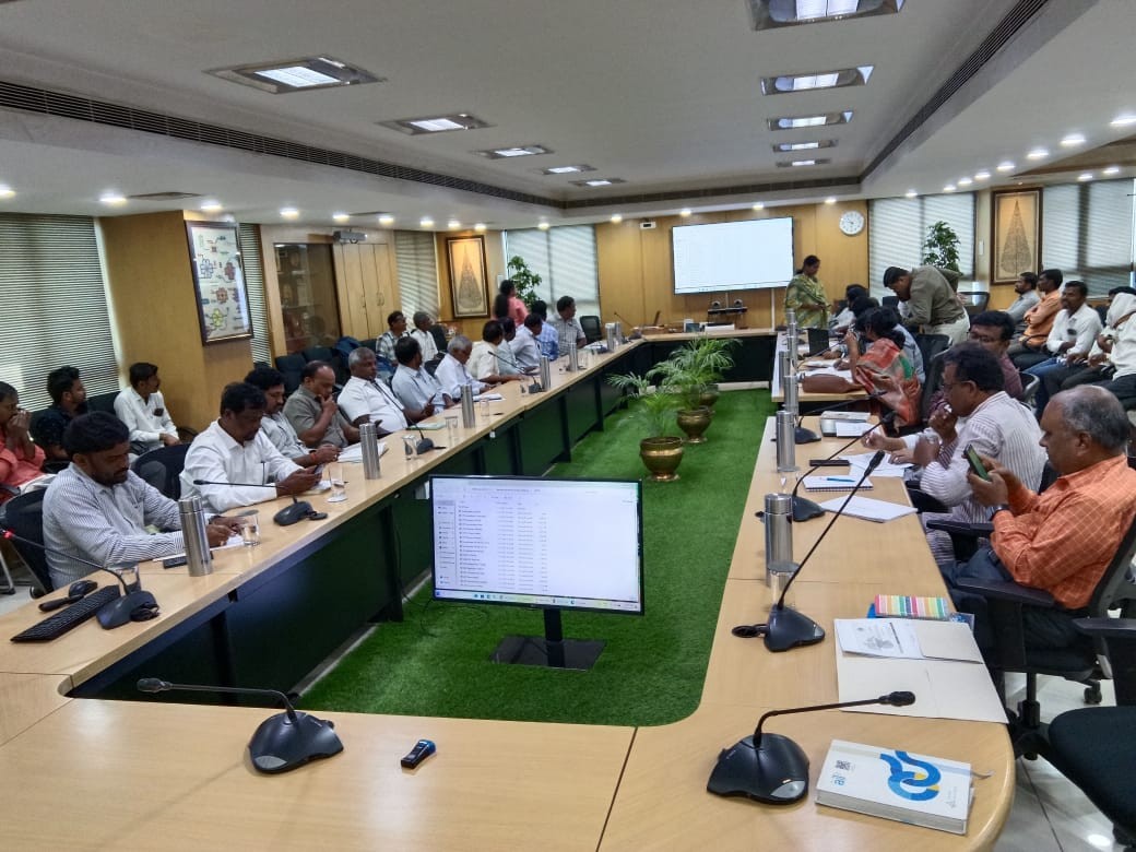 Dr. T. Bharath Programme Coordinator, Krishi Vigyan Kendra (KVK), Bhadradri Kothagudem, attended and participated in the review meeting on the progress of the ongoing project on Integrated Farming System (IFS) at Regional office, NABARD, Hyderabad. During the meeting, he proposed four new project concepts — Integrated Horticulture with Poultry System, Honey Bee Skill Training for Rural Unemployed Youth, Exposure Visit to Baramati KVK for Progressive Farmers, and Jaggery Making from Maize Stalks. The officials appreciated the innovative ideas and advised submission of detailed concept notes for further evaluation. The meeting was attended by Sri B. Uday Bhaskar garu, Chief General Manager, NABARD, Smt. Jisa, Deputy General Manager, NABARD, Sri B. Shiva, SMS (Horticulture), and other officials from NABARD and implementing agencies. In the afternoon, Dr. T. Bharath, along with Sri B. Shiva met Dr. Shaik N. Meera garu, Director ICAR-ATARI, Hyderabad and requested additional funds for developmental activities at Krishi Vigyan Kendra, Bhadradri Kothagudem.