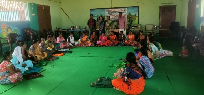 KVK, Malyal organized 4 days Skill Training Programme on “Tailoring” from 19th to 22nd December, 2023 at Rythuvedika, Gudur under Tribal Sub Plan, 2023-24. The training started with inaugural session on 19-12-2023 and Dr. E. Rambabu, SMS (Hort.) & Co-PI of TSP explained about the objectives of this project and suggested to take up self employment in agriculture and allied sectors. Smt. G. Vinoda, VAS Tailoring and Matching Centre, Gudur, acted as resource person for the training. She has taken theory and practical sessions on blouse stitching, dress stitching, frocks for kids, basic tips in tailoring. On 3rd day (21-12-2023) exposure visit was conducted with the trainees to Sairam Boutique, Embroidery & Maggam Works, Mahabubabad where Smt. Ch. Swapna acted as resource person and explained about basic tips and practically shown embroidering and maggam work design. In the valedictory session, Dr. S. Malathi, Programme Coordinator, emphasized on self employment of women for economic empowerment. Sri M. Laximinarayana, DAO, Mahabubabad participated as Chief Guest and addressed the gathering. Sri D. Bansilal, Senior Branch Manager, UBI, Gudur, participated in the programme and explained about schemes, mudra loans, financial support available at banks for the development of women entrepreneurship. Later, 'participation certificates' were distributed to the trainees. Sri R. Ravinder, APM, IKP-DRDA, Gudur, Smt G. Vyjayanthi, AEO, Gudur cluster, Smt. K. Kalyani, AEO, Ootla, Chakruthanda Cluster and 25 no. of ST women from 4 TSP adopted villages (Chakru Thanda, Ootla of Gudur Mandal & Eshwaragudem, Doravarivempalli of Kothaguda Mandal) attended the training.