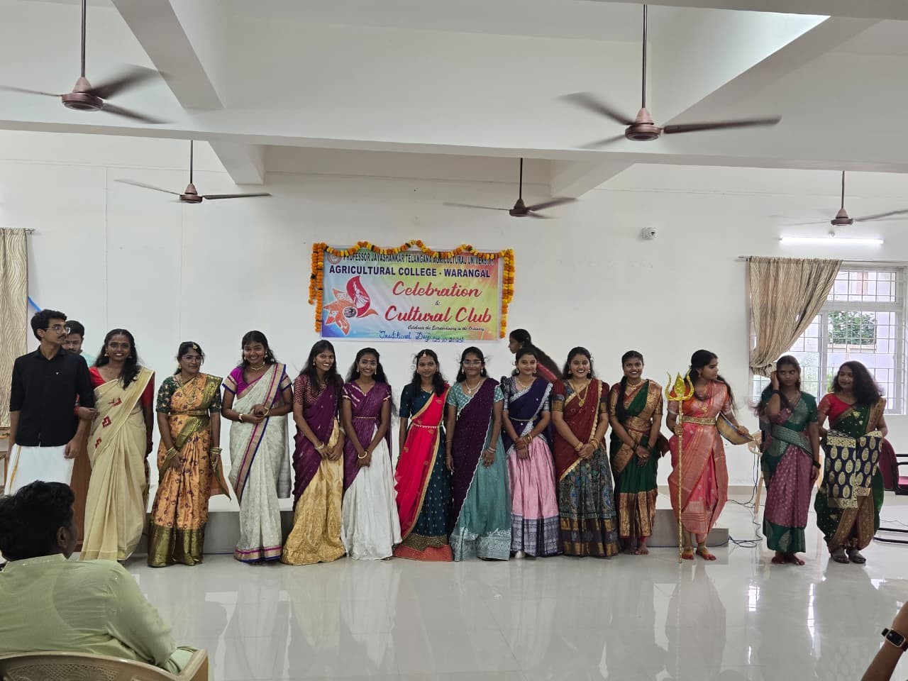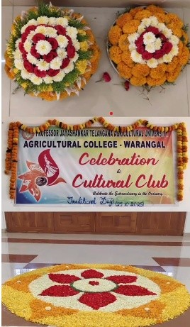 The Celebrations and Cultural Club of Agricultural College, Warangal celebrated Traditional Day on 25th October, 2025, at the college campus on the eve of International Kalakarula Day. The event was planned with an aim to reflect and promote India’s rich cultural heritage and traditions among students and nurture appreciation of our roots. The special day allows students to express pride in their heritage by wearing traditional attire and participating in cultural activities. It’s a day where students and faculty come together to honor and showcase the diverse traditions, attire, and customs of different regions. Traditional Day also brings joy, color, and a sense of belonging to the college campus. On the occasion, the students and staff members came dressed in their respective traditional attires, showcasing the diversity and cultural vibrancy of our nation. The entire campus was filled with festive enthusiasm and colorful decorations reflecting various cultural themes. The programme commenced with a formal welcome address, followed by a series of cultural performances including traditional dances, songs, and a fashion show depicting the traditional wear of different states. The performances highlighted the essence of unity in diversity and the importance of preserving our cultural roots. Dr. V. Ravinder Naik, Associate Dean of the college, attended the event along with other senior faculty. In his address, the Associate Dean appreciated the efforts of the Celebrations and Cultural Club for organizing such a vibrant event and encouraged students to value and uphold cultural traditions while embracing modernity. On the occasion, he also remembered that, the day not only strengthens cultural identity but also reminds us that traditions are bridges connecting our past, present, and future. The event was successfully coordinated by the student members of the Celebrations and Cultural Club under the guidance of the faculty in-charge. The celebration concluded with a vote of thanks and group photographs capturing the joyful moments. Overall, the Traditional Day celebration served as a meaningful platform for students to express their cultural identity, foster mutual respect, and strengthen the spirit of togetherness within the college community.