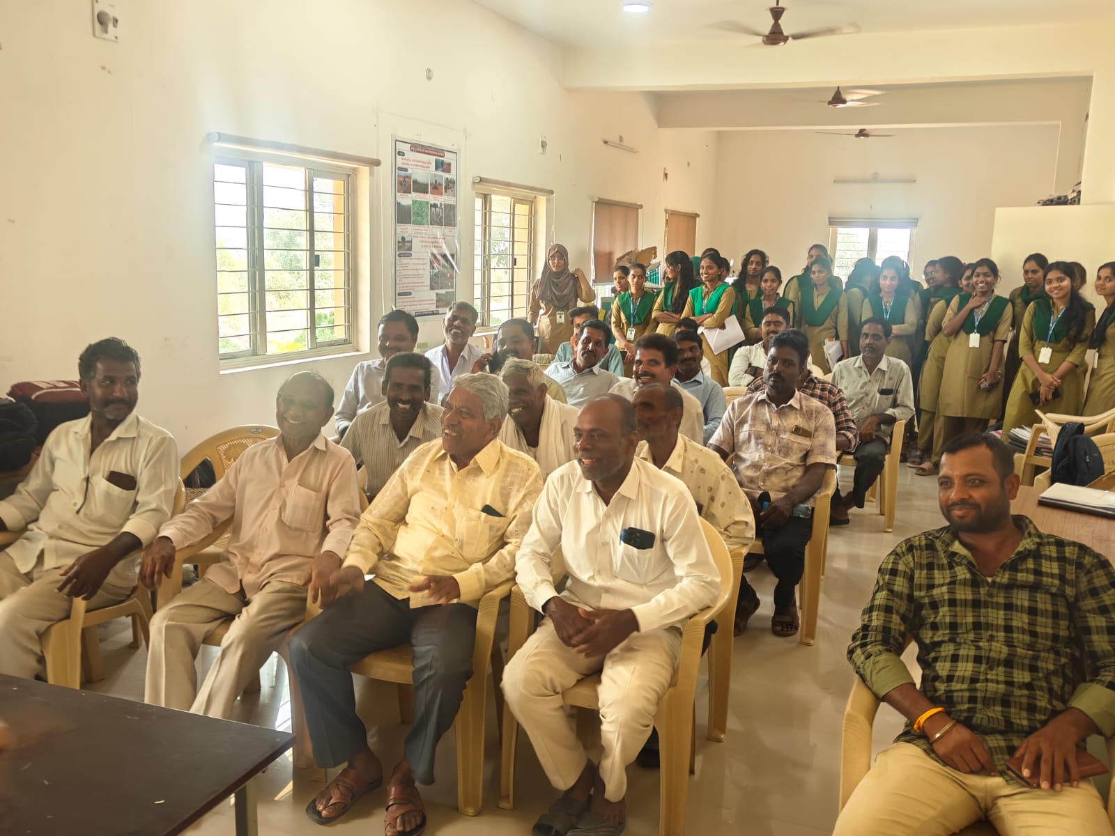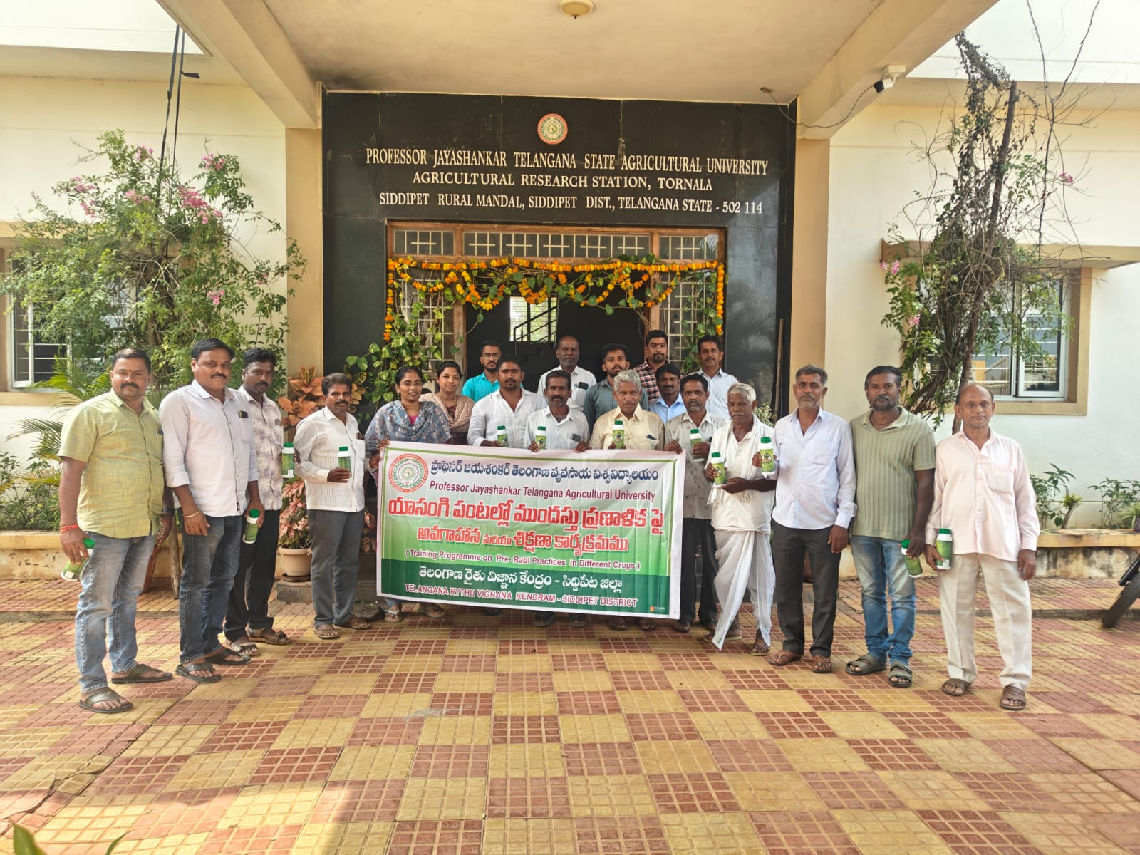 TRVK, Siddipet organized training programme on Pre- rabi practices in different crops on 18.10.2025 at ARS, Tornala, Siddipet district. Dr. Ch. Pallavi briefed about the crop diversification and integrated crop management technologies, importance of crop diversification and also stressed more on zero tillage maize and sunflower in rice-fallows; after tillage green gram and black gram in rice-fallows and while bengal gram, green gram, blackgram, groundnut, sunflower, safflower, sesamum as irrigated dry crops. She encouraged the farmers for cultivation of oil seeds and pulses. She discussed pest and disease management in current crops like paddy, maize and cotton. Paddy cultivation is not profitable under the existing water resources, cultivating various types of id crops instead of paddy in Rabi season can not only cultivate more area but also earn more profit to the farmers. With the water required for cultivation of one acre of paddy, id crops can be cultivated in an area of at least 2 to 8 acres. Crop rotation reduces the number of insects and pests that destroy crops. Sowing id crops reduces the shortage of pulses, oilseeds and vegetables. Crop rotation with pulses improves soil fertility. Green gram and castor crops can be sown from September 15 to October 15, Groundnut, gram, maize, sweet maize, ragi, mustard and safflower crops can be sown from October 15 to November 15, Sunflower can also be sown from November to December. Sorghum can also be sown till the end of December. In this programme 27 no. RAWEP students and 40 no. farmers in different villages were participated.