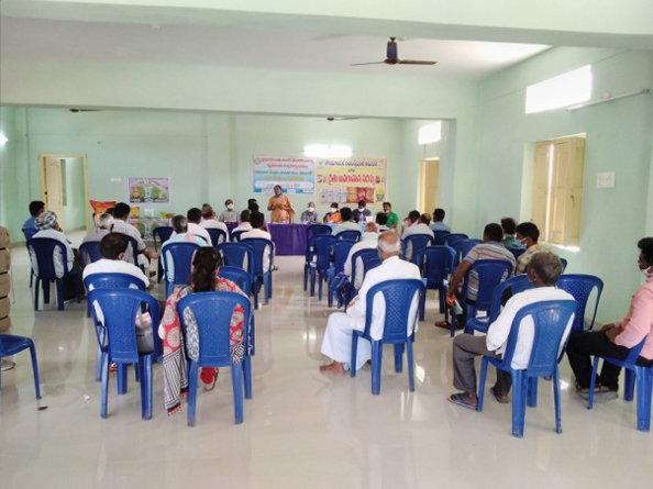 A Training programme on “IPM in cotton” was organized at Shodashapally village, Velair mandal, Warangal (Urban) district on 25-11-2020 by District Agriculture Advisory and Transfer of Technology Center (DAATTC), Warangal with an objective of training on integrated management of major pests in cotton. Dr. B.Anil Kumar, Senior Scientist (Crop Protection) and Coordinator of DAATT centre, Warangal, Dr.S.Malathi, Principal Scientist, RARS, Warangal, Sri.J.Vijay, scientist, DAATT centre, Warangal have participated and acted as resource person in the programme. Sri. Damodhar Reddy, Assistant Director of Agriculture, Smt.Padma, Mandal Agricultural Officer, Velair mandal, Sri. Raja Reddy, Rythu Samanvaya Committee Coordinator, Coromandal Company officials and 55 farmers from Shodashapally village, Velair mandal, Warangal (Urban) have participated in the programme. Dr.B.Anil Kumar explained about Integrated pest management practices of sucking pests and bollworms in cotton. Management of pink bollworms was emphasized as its damage was severe in the village during the vanakalam 2020. Dr.S.Malathi, Principal Scientist (Entomology), RARS, Warangal has highlighted the importance of Integrated Pest Management of cotton in the present scenario and discussed the advantages of IPM over chemical control of insect pests.