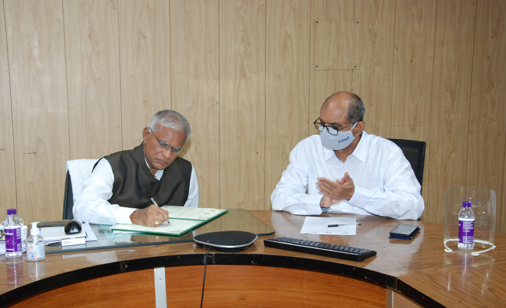 The Department of Agriculture, Government of Telangana & Professor Jayashankar Telangana State Agricultural Univesity(PJTSAU) and Indian School of Business(ISB) has signed an Memorandum of Understanding (MoU) to bring up an executable strategic branding and marketing plan for the new paddy variety of RNR 15048 popularly known as ‘Telangana Sona’. The signing of MoU was held in Virtual mode on 14-08-2020. Dr B Janardhan reddy, Principal Secretary &APC Agriculture and cooperation department, Government of Telangana, Dr V Praveen Rao, Vice Chancellor, PJTSAU and Professor DVR Seshadri, Clinical Professor Marketing and Executive Director, ISB centre for Business Markets, ISB were signed on MoU papers.While speaking on this occasion Dr B Janardhan Reddy and Dr Praveen Rao opined that, the ‘Telangana Sona’ would create brand image for Telangana State at the National and International level. With the visionary leadership and implementing of several innovative programmes by the Hon’ble chief minister Sri K Chandrashekar Rao Telangana state has become surplus agricultural production & Productivity in several crops said the Dr Janardhan Reddy. He added that, there is a need to create marketing for agricultural produce to ensure the profitability to the farmers. Addressing in the virtual meeting Dr Praveen Rao had explained that, with the constant support from the Government of Telangana and Hon’ble CM Sri KCR, university has achieved 3rd Rank in the country and 1st Rank in south India among agricultural universities. He said that, farmers are facing three major challenges at the field level such as Risk, Increasing of cost of Production and profitability. To enhance the incomes of the farming community we need to create food value chain for agricultural produce. Professor DVR Seshadri of ISB also spoke on this occasion. Dr S Sudheer Kumar, Registrar PJTSAU, DNV Kumara Guru, Professor Manish Gangawar, Professor Madhu Viswanathan of ISB were also participated.