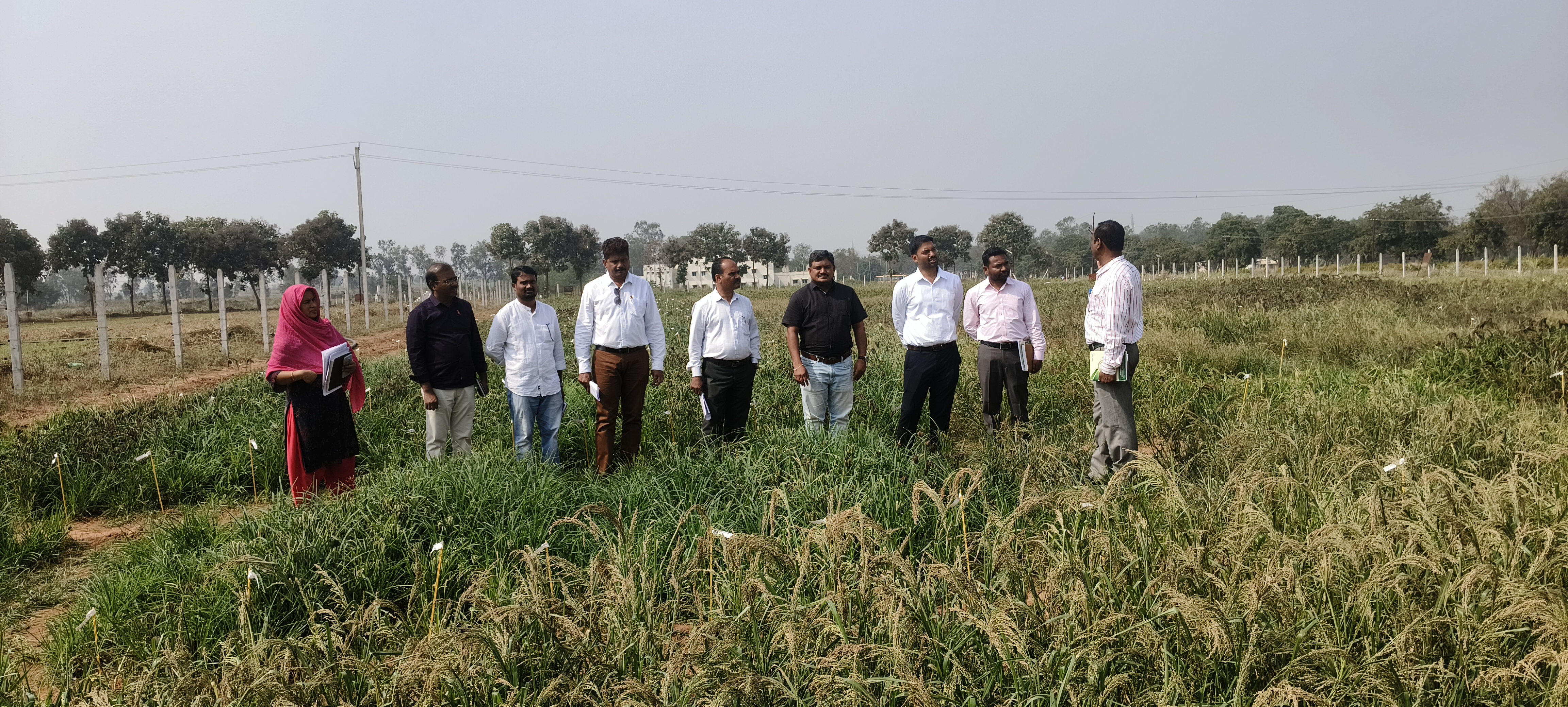 As part of the training programme, an exposure visit was undertaken by the trainee Group-I officers, viz., Sri T. Ashok and Sri P. Harsha, under the chairmanship of Sri Yashwanth Rao, District Agricultural Officer (DAO), Nagarkurnool, to the Regional Agricultural Research Station (RARS), Palem on 05.01.2025. Dr. L. Krishna, Associate Director of Research (ADR), RARS, Palem, welcomed the trainee officers and briefed them on the organizational structure of Professor Jayashankar Telangana Agricultural University (PJTAU) in the state. He further explained the pivotal role of the university in transforming farmers’ livelihoods in Telangana. Initially, a documentary on the Diamond Jubilee celebrations of the university was screened, highlighting the significant transformations achieved by PJTAU over the past 60 years. Subsequently, a video on PJTAU Vision 2047 was played, wherein the Hon’ble Vice- Chancellor, PJTAU, Prof. Aldas Janaiah, outlined the objectives and goals to be achieved by 2047 in service of the farming community. Later, Dr. K. Sadaiah, Scientist (Plant Breeding), explained the seed production activities being carried out at the research station in accordance with the requirements of the Southern Telangana Zone. Thereafter, the trainee officers, along with the DAO, visited the experimental fields at RARS, Palem. During the field visit, Dr. G. Eswara Reddy, Scientist (Plant Breeding), briefed them on the ongoing research activities in pulses, particularly redgram and horsegram. He emphasized the collaborative research efforts with ICRISAT aimed at developing and disseminating advanced pulse production technologies. He also explained the redgram crossing programme and showcased various redgram varieties currently being cultivated by farmers. Later, Dr. D. Shashibhushan, Principal Scientist (Plant Breeding), explained the importance of millets to the trainee officers, with emphasis on the ongoing research activities on millets at RARS, Palem. He further elaborated on the cultivars released under the programme, highlighting the nutritionally rich (iron- and zinc-enriched) bio-fortified pearl millet variety PBH-1625, developed in collaboration with ICRISAT, Patancheru. Subsequently, Dr. K. Sadaiah, Scientist (Plant Breeding), briefed the trainees on the research activities being carried out on the castor crop at RARS, Palem. He emphasized that RARS, Palem is the only research station where exclusive research on castor is being undertaken. He further explained the ongoing research on castor plant types aimed at developing ideotypes suitable for the cropping systems of Telangana. Thereafter, the trainees visited the castor agronomy experimental plots, where Dr. Kadasiddappa M.M., Scientist (Agronomy), explained the research activities related to the use of nano- fertilizers and herbicides in castor. He emphasized that application of nano-DAP along with optimum fertilizer dosages has shown promising results in achieving yields comparable to conventional fertilization in castor. Subsequently, the team visited the groundnut experimental plots, where Dr. M. Sreedhar, Principal Scientist (Oilseeds), briefed the trainees on the research activities of the groundnut programme at RARS, Palem. He informed that adaptive trials of the variety ‘Vishishta’ (TCGS-1694) are being conducted across the state. He further explained the seed production and productivity enhancement activities in groundnut. Ms. B. G. Shobha Rathod, Scientist (Agronomy), accompanied the team during the visit to the groundnut plots. Later, the team visited the seed godown and seed processing unit at RARS, Palem. Dr. K. Sadaiah, Scientist (Plant Breeding), explained the seed production activities being carried out at the research station, including the seed procurement and sales procedures followed by PJTAU in general and RARS, Palem in particular. Finally, the exposure visit of trainee group-I officers to RARS, Palem concluded with a formal visit to the office of the Associate Director of Research (ADR), RARS, Palem.