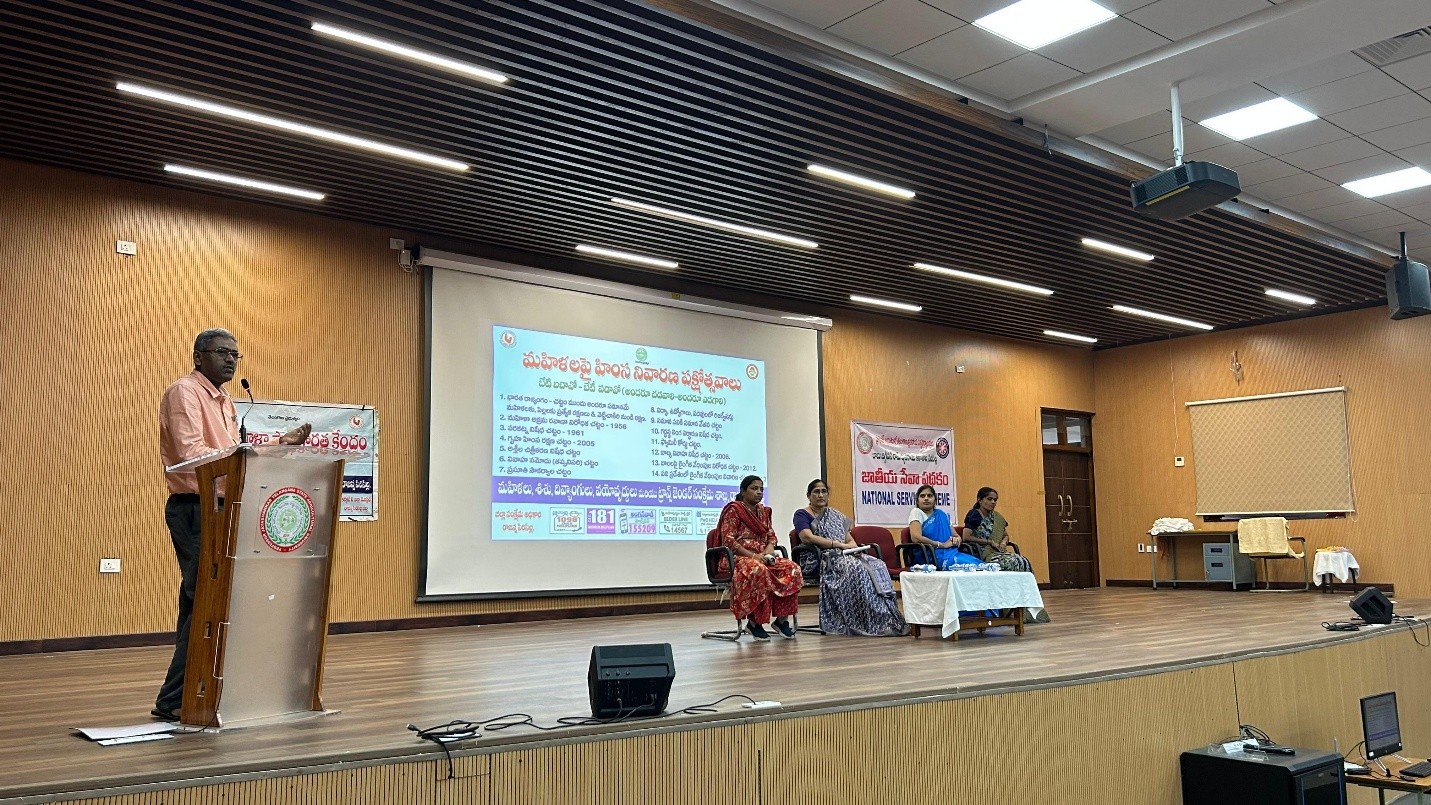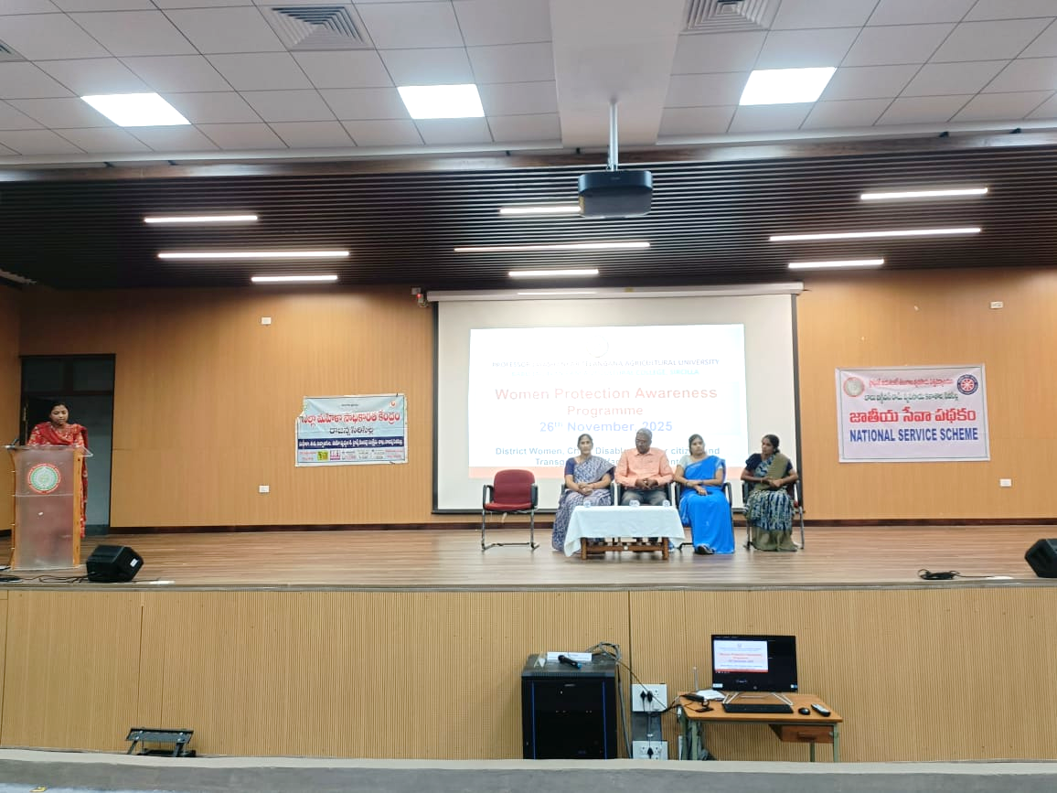 The Women Protection Cell of BJR Agricultural College, Sircilla, conducted an awareness programme on “Women and Child Abuse” on 26 November 2025, from 4:30 PM to 5:45 PM, in collaboration with the Department for Women, Children, Disabled, Senior Citizens and Transgender Welfare, Rajanna Sircilla. The programme was organized in connection with the International Day for the Elimination of Violence Against Women (25 November). The session began with opening remarks by Dr. Razia Sultana, In-charge Academic Dean, Professor (GPBR) and Chairperson, Women Protection Cell, who emphasized the importance of preventing violence against women and children. Smt. Roja, Women Empowerment Coordinator, delivered a detailed briefing on departmental initiatives, government schemes, and essential support services. She highlighted key helpline numbers such as 1098 (Child Helpline) and 181 (Sakhi One Stop Centre), and provided information on the POCSO Act and the Transgender Protection Act, along with real-life examples to enhance student awareness. Mr. Laxmi Raj, District Welfare Officer, further discussed ongoing government efforts to combat abuse and encouraged students to spread awareness among vulnerable groups. The programme concluded with a vote of thanks by Dr. P. Madhavi, Assistant Professor (SSAC) and member of the Women Protection Cell. Students, faculty, non-teaching, and support staff attended the awareness session.