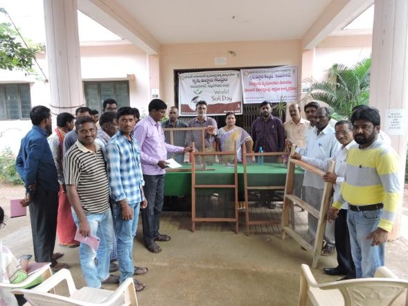 As per the instructions of the Director, ATARI-ICAR and PJTSAU, Hydearabd the World Soil Day cum Training on Organic farming and Soil health was conducted on 05.12.2019 for farmers and Agriculture Diploma students at Krishi Vigyan Kendra, Kampasagar. Dr.M.A. Aariff Khan Programme Coordinator, KVK, Kampasagar inaugurated the Programme and addressed the gathering. On the occasion he briefed importance of Soil quality improved by organic farming to farmers. Dr.Sameer Kumar, Principal Scientist (Millet), Palem, Dr.L.Krishna, Senior Scientist (Plant Breeding), Rice Section, Rajendranagar, Dr.K.Sumalini, Vice-Principal, APT, Kampasagar and Dr. T. Bharath, SMS (Crop production) and other scientists and nearly 60 farmers were participated. Later, Dr.Sameer Kumar, Principal Scientist (Millet) briefed the importance of pulse crop production in cropping for enriching fertility. Dr.L.Krishna, Senior Scientist (Plant Breeding), Rice Section, Rajendranagar briefed about rice nursery management and varieties suitable for rabi season. Finally, Soil health cards were distributed to farmers and programme closed at evening 4.00 PM.