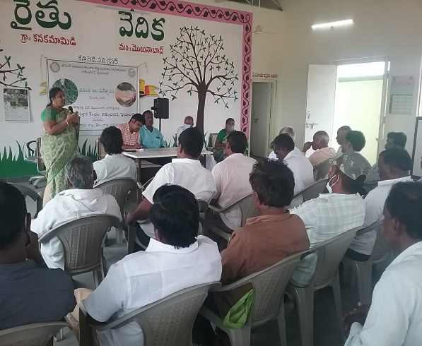 Professor Jayashankar Telangana State Agricultural University, Water Technology Centre, Rajendranagar, Hyderabad has conducted World Water Day at Rythuvedika of Kethireddypally cluster of Moinabad mandal on 22nd March 2022 (Tuesday). Dr. Md. Latheef Pasha, Senior Scientist, Dr. T. L. Neelima, Senior Scientist from Water Technology Centre, Rajendra nagar, Hyderabad, Dr. N. Pravin, Co-ordinator of Eruvakakendram, DAATTC, Tandur, Smt. Ragamma, Mandal Agriculture Officer, Moinabad mandal, Sri. Kumar, Agriculture Extension Officer, Kethireddypalle cluster, Sri. J. Ambaji Rao, Sarpanch of Appareddygudem village and 50 farmers participated in the programme. In this programme, scientists explained to farmers about the need for water conservation in agriculture because of depletion of water resources and climate changes. Scientists also guided farmers to cultivate paddy by Alternate Wetting and Drying (AWD) and Direct dry seeding methods to save the water. They also suggested cultivation of irrigated dry crops like Maize, Red gram, Cotton, Vegetables in Rabi season which increases water use efficiency. Drip method of irrigation or fertigation in addition to mulching in vegetable cultivation is advocated for increased yield and water use efficiency. Furrow method of irrigation in irrigated dry crops, construction of contour bunds (tillage across the slope), cultivation of inter crops and construction of rain water harvesting structures at field level suggested for conservation of water.